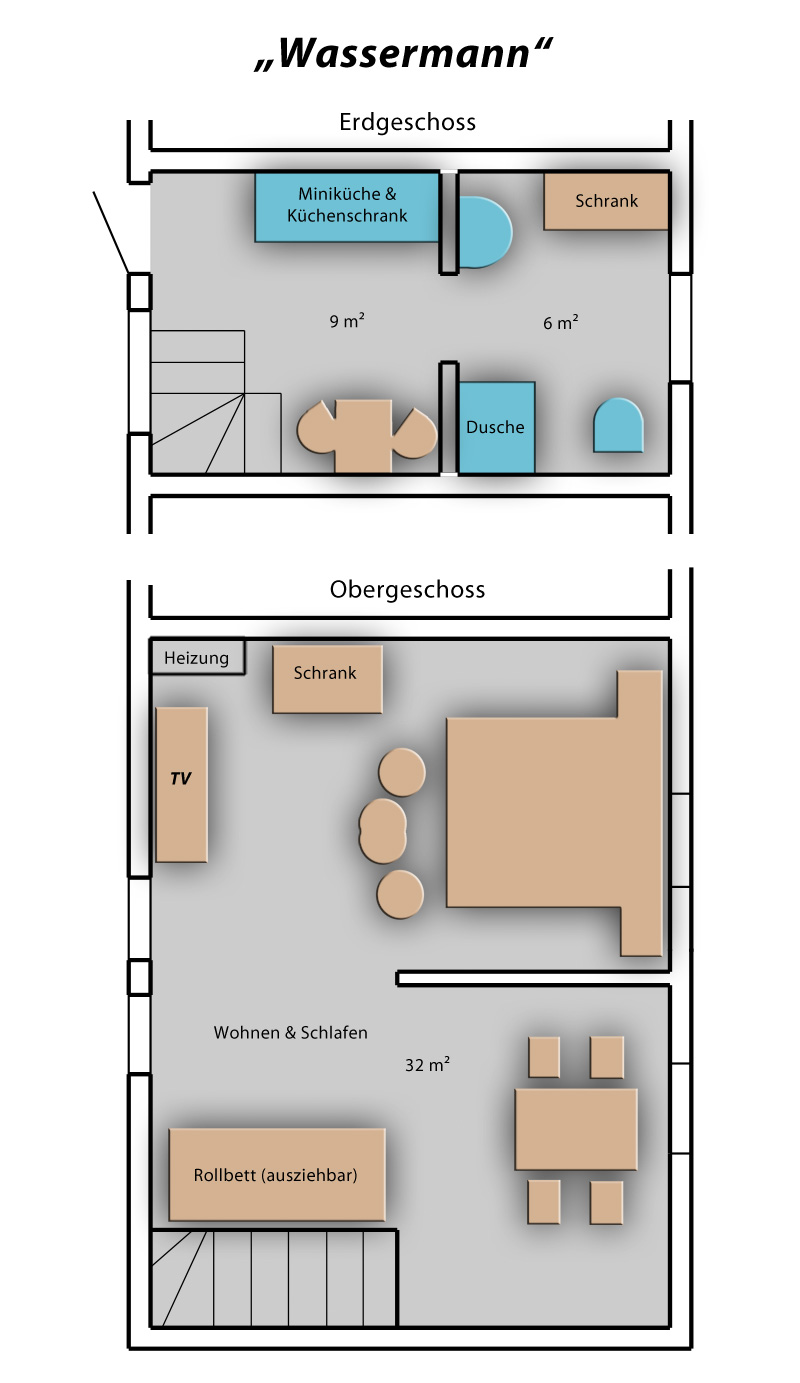Wir stellen Ihnen vom 1. Mai bis zum 30. September zwei komfortable Ferienwohnungen für jeweils zwei Personen in einem separaten Gebäude zur Verfügung.